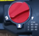 - 3 vitesses de rotation pour carottage jusqu'au Ø 200 mm dans la maconnerie et 182 mm dans le béton armé
