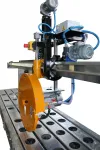 La machine peut être équipée d'un support permettant de contrôler le mouvement de chaque côté, ce qui facilite les coupes parallèles.Le support se déplace parallèlement au trait de coupe, grâce à une manivelle et vis sans fin, ce qui évite les essais et erreurs de mesure.Elle est équipé d'un indicateur digital de position ( en option)