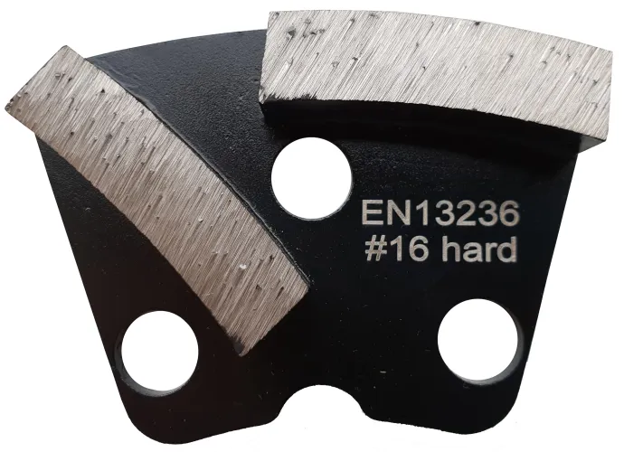 Plaquette diamant professionnelle avec 2 segments Grain 16 avec liant DUR, spécialement conçue pour le ponçage et la préparation de sols en béton extérieur ou abrasif