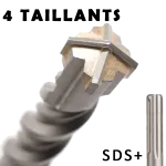 - 4 taillants symétriques en carbure massif : perçage circulaire, net et précis, sans éclatement, même dans le béton armé.